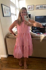So this is PERFECT for our social distancing summer. You could throw it on, feel a tad dressed up, but still feel totally relaxed. It was not my husband's fave dress because of its loose fit, but I loved it and the colors.