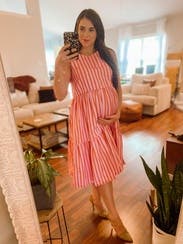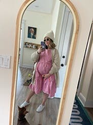 36 weeks pregnant and this dress was so perfect. I wore it a few times while I had it! Fun, flowy, and true to size.