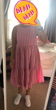I get that it's supposed to be big and I guess it might work for some bodies but it was not great for me. I went down to a size 4 and easily could've done a 2. Even the arm holes were huge (why is this always a problem with RTR dresses??) the voluminous nature with the striped material really gave a circus tent vibe that I wasn't going for. I wore it to WFH and it was fine but unless you're shaped like a flagpole it's probably not gonna flatter.
