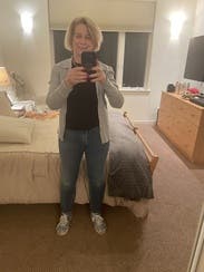 I loved how this fit but the button was literally hanging on by a string and fell off as soon as I put it on, so I ended up not being able to wear it.