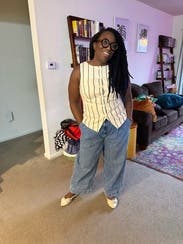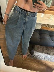 I wanted these because they looked like they had a “paper bag” fit/cut to them , but in reality they are a slightly tapered wide leg jean - which is okay but a little more plain than I was wanting.