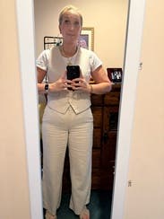 I usually opt for dresses over separates, but I couldn't resist this chic Michael Kors set when both the vest and pants were available. The quality was fantastic, and the pieces felt both stylish and professional for work. While I could have sized down in the pants, the fit was otherwise perfect. This beige and pink set was a great addition to my capsule month.