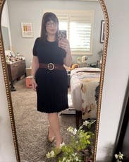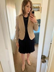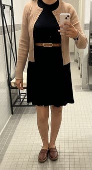 I called this my Helly R dress because I felt like the character from Severance. It was very flattering and can be accessorized in a lot of different ways. It can also work for every season. I would love to buy it.