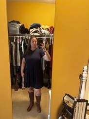 Absolutely love this navy dress that’s so easy to throw on. It’s a little thicker so perfect for fall. Runs TTS. Got tons of compliments.
