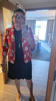 Love this dress! Very classic style and can be dressed up or down. Perfect for a professional conference.