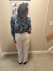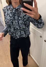 A really solid work shirt, except for the fact that it has an attached internal sheer tank (which is slightly visible in my pic). It took me too long to get the inner tank untwisted and into it successfully. Would be SO much better without the attached inner tank. The top otherwise was cute!