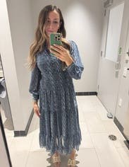 I loved this dress; it was the perfect length for this petite and not too much fabric! The sun bed waist really helps to avoid overwhelming.