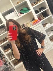 This top ran big on me & was a bit bulky to tuck in, but made it work. Still received compliments despite it being a bit large. Would definitely rent again in a smaller size.