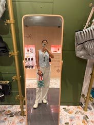 The vest and matching shorts are adorable for a casual while elevated look. The linen was thick enough to not see through, but very light and breezy.