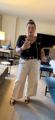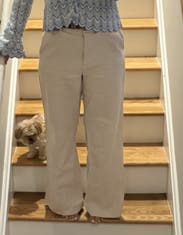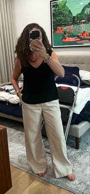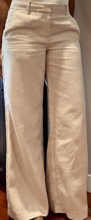 After my success with another pair of Michael Kors pants, I rented these and the fit was a little snug in the hip area. I’m 37”in the hip and if I rent these again, I will go with a size 2. The waist was perfect, though. That is the conundrum of being a pear. I took this picture about 10 minutes after steaming them so they do wrinkle - but that’s linen. They were comfortable and can be dressed up or down.