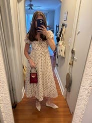 Loved this dress - felt so soft and breezy. Would throw on to play with the kids outside then transition to going out in the daytime so easily. Would absolutely rent again! Fit TTS for me.
