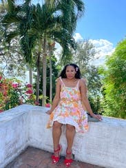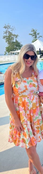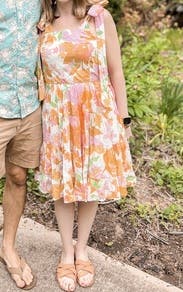 The patterns and colors of this dress are so cute for spring and summer! The fit is really nice too, the bust was fitted and the tied straps make this dress super adjustable. I did find the skirt part of the dress a little large but overall i felt comfy in it while also sporting a fun pattern for a backyard family event