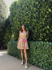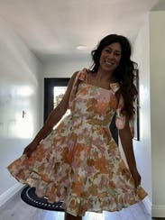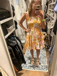 This is such a fun spring/summer dress. Beautiful colors and fun print! I’m typically a medium, and it was a little roomy. It took me awhile to steam it, and I couldn’t get it completely wrinkle free (especially the straps).