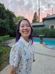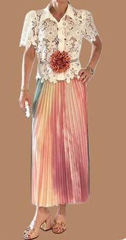 A beautiful top that can be dressed up or down. I sized up one and am glad I did. Because of the material there’s no give