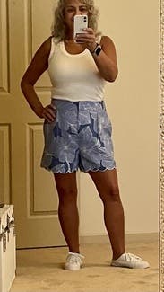 I was nervous to rent these after reading others’ reviews about them being so large. I have athletic/muscular legs and butt so shorts are hard for me. These fit me perfectly and the scalloping adds a fun dimension.
