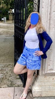 These shorts are very cute and a great length! But they are tight in the waist and so puff out otherwise. Should have sized up because my mid section is more of an apple/athletic than hour glass