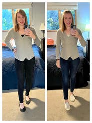 I like that the sweater had a fun hemline and pretty gold buttons. It was comfortable to wear and not too short. I paired it with both jeans and black pants. Definitely a good basic that I will consider renting again.