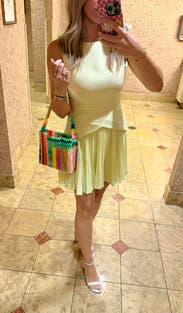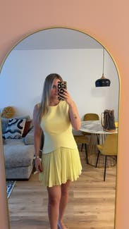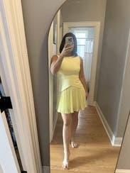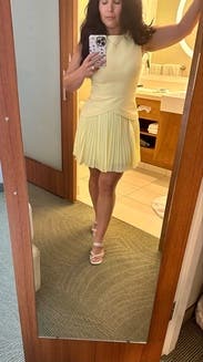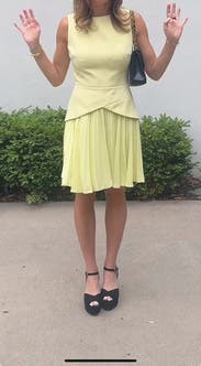 Absolutely LOVED this dress! Yellow is my favorite color and the mixed media look of this was so unique, I couldn't wait to rent it. It was even better in person than I had expected. I wore it to work, but would definitely wear it for a special event or occasion with some heels too. Received compliments all day. I do wish it was just a tad longer in the back, but it was still comfortable enough to wear to the office. Will be adding it to my regular rental rotation!