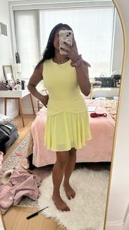 Perfect tennis dress for work. Threw a white blazer over it and boom good to go