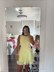 Wore this to the open and the color perfectly matched the honey-deuces. Important!! If you’re shorter than me you could honestly wear to work.