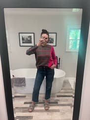 I got so many compliments in this sweater! It’s super stylish and comfortable. Perfect for the Fall!