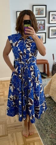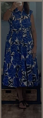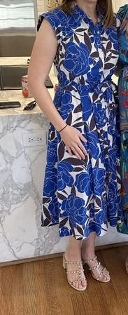 Such a fun dress! Gorgeous bright blue color, fits tts, no button gaping. Wore for work but would be great for vacay or weekends too. Great dress, easy wearing and styling.