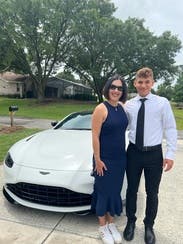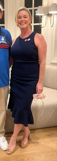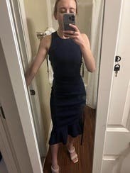Perfect navy sweater dress to wear to a graduation ceremony.