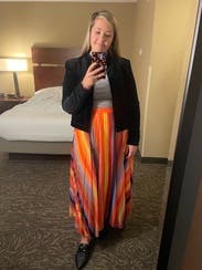 I loved this skirt and got so many compliments on it. Super flowy and light. Because the colors are so vibrant, I toned everything else down to wear it to work and out for dinner with friends. Highly recommend if you're okay with standing out!