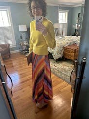 This skirt is so bright and fun - excellent for twirling. Very very long so be wary short gals that this will basically be floor length on you!