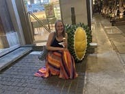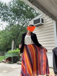 This is a happy skirt. It definitely got attention and is very bright. Even though I’m tall I found it to be super long and would get kind of caught under me. Worth a rental!