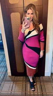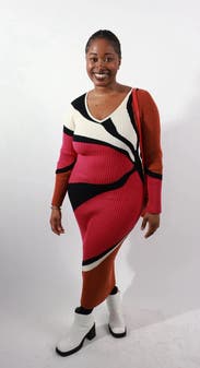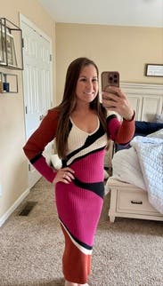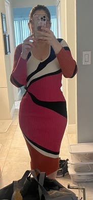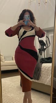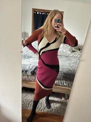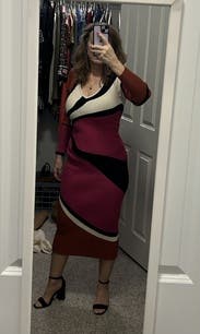 This was a fun rental, wore it to work once and a drag brunch (maybe a bit conservative for that ;) ). Fit well and didn't "grow" (stretch out) as I wore it, as some sweater dresses do.