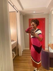 Wore this on a Valentine dinner date. Loved how soft but shape hugging and comfortable this dress was! I didn’t want to take it off; a fun dress to rent! A little long for my preference on my 5’4” frame.