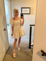 I loved this dress! It’s a little tight on the bottom so I had to go up in size. Overall a favorite!