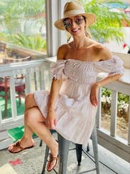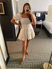 I originally rented this dress for my bachelorette party as an option for our various activities and I liked it SO MUCH! It's comfortable with all the smocking (lots of give) and while it's pretty short, it's a little longer in the back so you won't be worried about accidentally showing anything off.