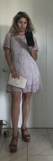 I wore this for work but it could easily be dressed down with a pair of sneakers. One and done kinda dressing, slipped it over the head and ready to go. Lined and airy. Perfect for summer.