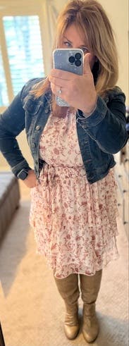 Loved how this dress fit in the waist and sleeves. Wore it for our anniversary photo session and the pattern/color is super flattering for photos!
