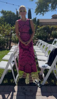Loved this dress! It was super comfortable and very stretchy—perfect for wearing at 21 weeks pregnant. I received tons of compliments! I sized up to an XL to accommodate my bump, and it worked out perfectly.