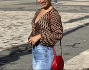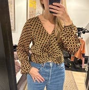 Cute top with a fun print. It is a crop top but I wore pretty high waisted jeans. The shirt does cut pretty low so I put a little fashion tape to make the V not so deep.