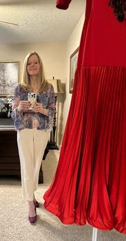 Wore this top to rodeo and it was perfect! The top is sheer and flowy so it was great on a warm day. Loved the color and will be renting again.
