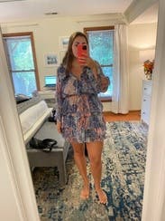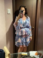 So unflattering. Probably all the ruffles.. I wanted to love this but felt awful in it all night. A little low cut and shorter than I would have expected. A tad of stretch. I’m sure if I was shorter and thinner I would have loved it.