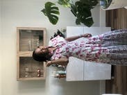 Wore to an awards luncheon. I felt the sleeves were stiff like a cape, I expected them to fall on my body a little more. The colors are vibrant and bright, can’t have a bad day in this dress! Me: Hips 40” Waist 34” Arms 12” Wearing 2.5” wedges
