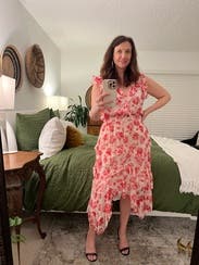 This dress was so comfortable and cute for a baby shower! It is pretty see-through so I wore nude undergarments and it was fine because of the print