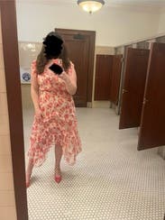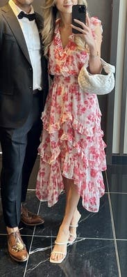 This dress is very girly and fits nicely. I loved the soft colors, the different layers and frills. This is a great staple for brunch, baby showers or bridal showers, or just a day/night out in the spring/summer. I would rent again!