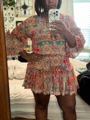 Loved this dress received so many compliments. Was very flattering a bit short but I didn’t mind it. Perfect for pool days to quickly pull over and pop into a dinner or bar. So girly and freeing loved it. I wish they had colorway and pattern would totally rent again.