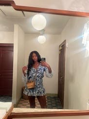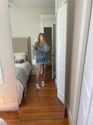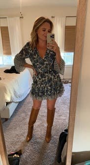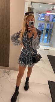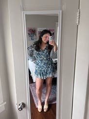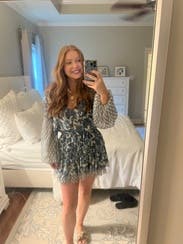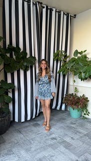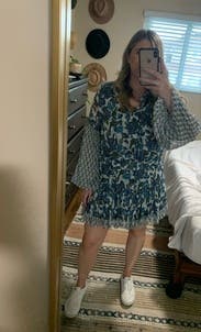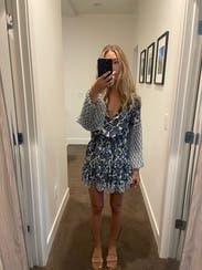 Absolutely obsessed with the print. I recommend sizing up because the dress is definitely short.