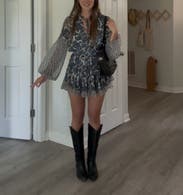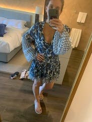 Tip / Fit: It's very short, so you tall ladies beware! It has a stretchy waist that you can pull down to make the dress longer but then you might lose the cute flowy boho look it intends for. I'm usually a small by the medium fit perfect because I think the small might have been too shorty (I'm 5'2) Review: so many compliments on this! I'll rent again .