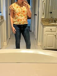 I loved the look of the blouse since it had some slight metallic gold in it. Very pretty! My one complaint is it was a little short for me otherwise I may have bought it.
