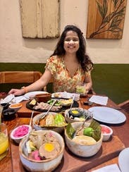 This is a cute top. I wore it to dinner. It really has a vacation vibe.