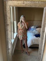 Cute, bright summery colors. I've worn it out for drinks and also to a school mom coffee. Considering keeping!