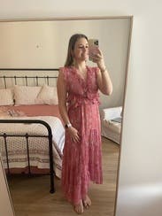 Wore this to a dressy event on the beach on a humid, warm evening. It is so flowy and very comfortable. I love the movement in Misa dresses. The XS fit me perfectly and I think so flattering . Waist is elastic so also very comfortable. Would love to wear again.